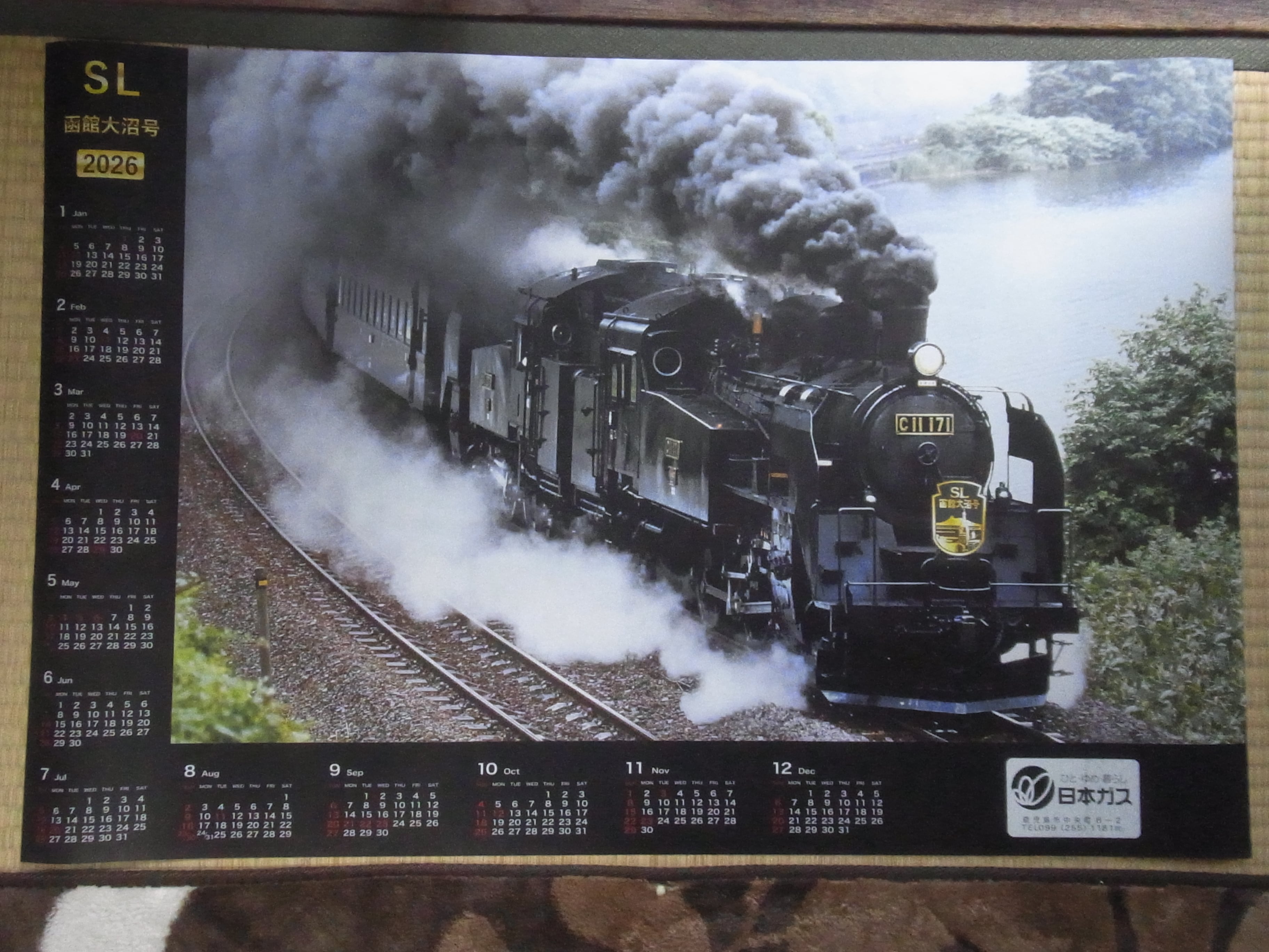 ・2026年 SL 鉄道カレンダー 蒸気機関車 函館大沼号 C 11 171 です。