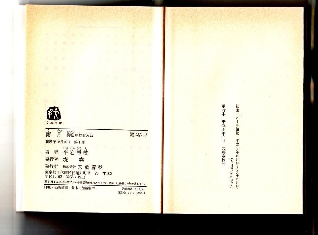 小説 文庫本 雨月 御宿かわせみ17 平岩 弓枝 著