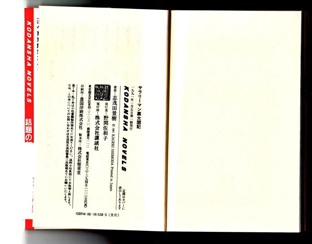 小説 新書判 サラリーマン裏太閤記 KODANSAH NOVELS 志茂田 景樹 著