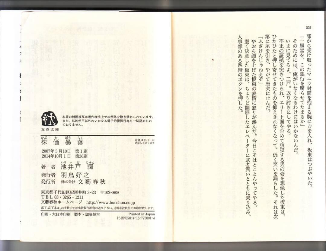 小説 文庫本 株価暴落 池井戸 潤 著