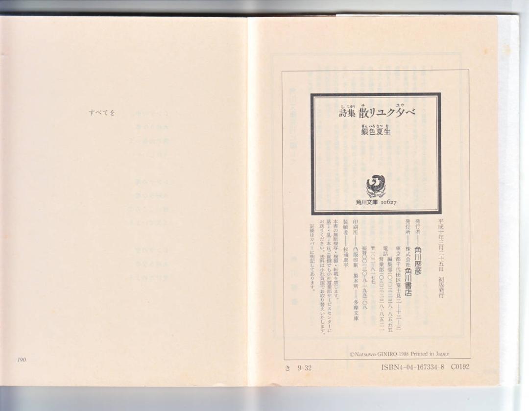 小説 文庫本 散リユク夕ベ 銀色 夏生 著