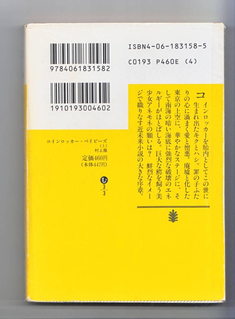 小説 文庫本 コインロッカー・ベイビーズ 上 村上 龍 著