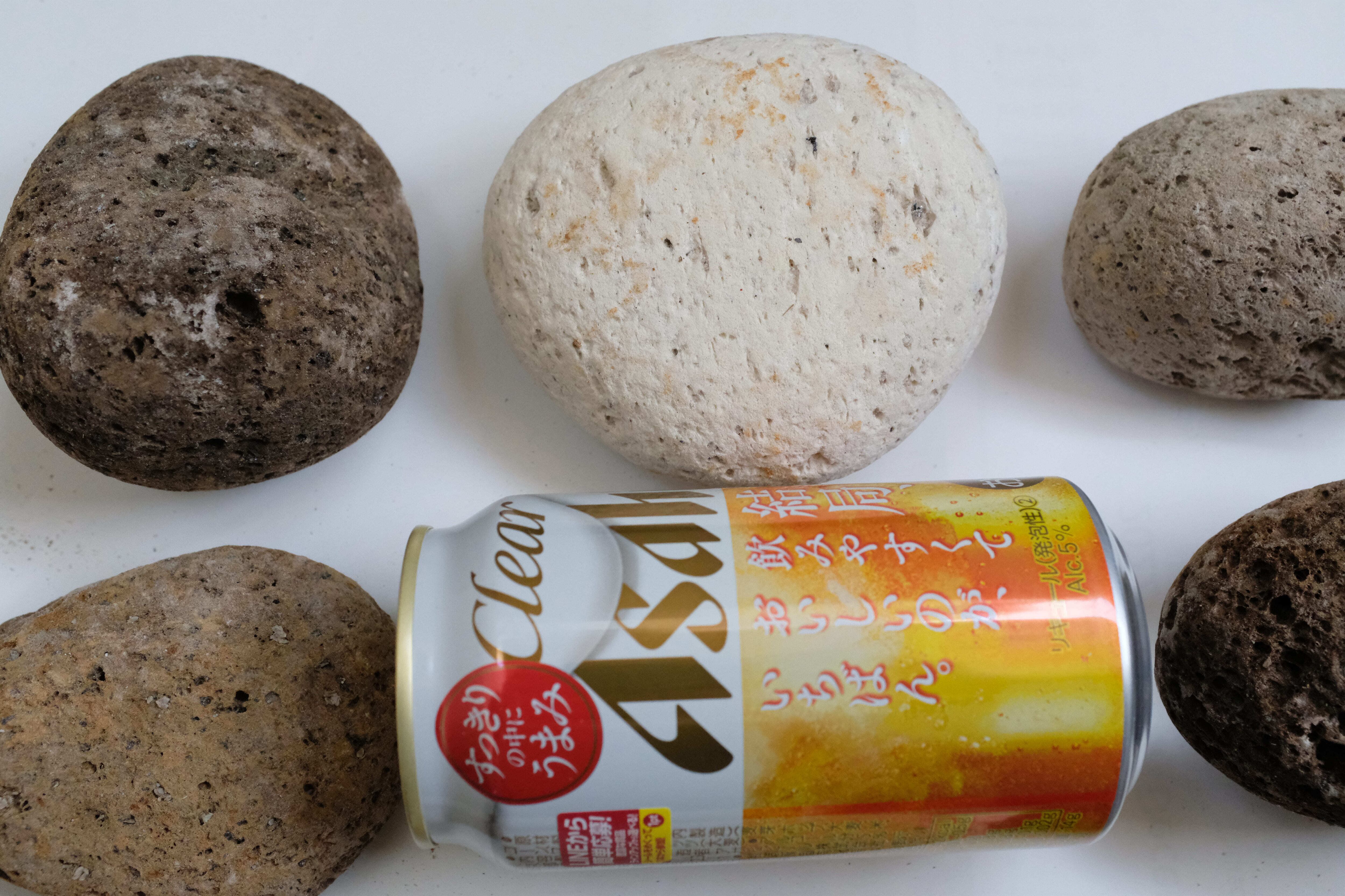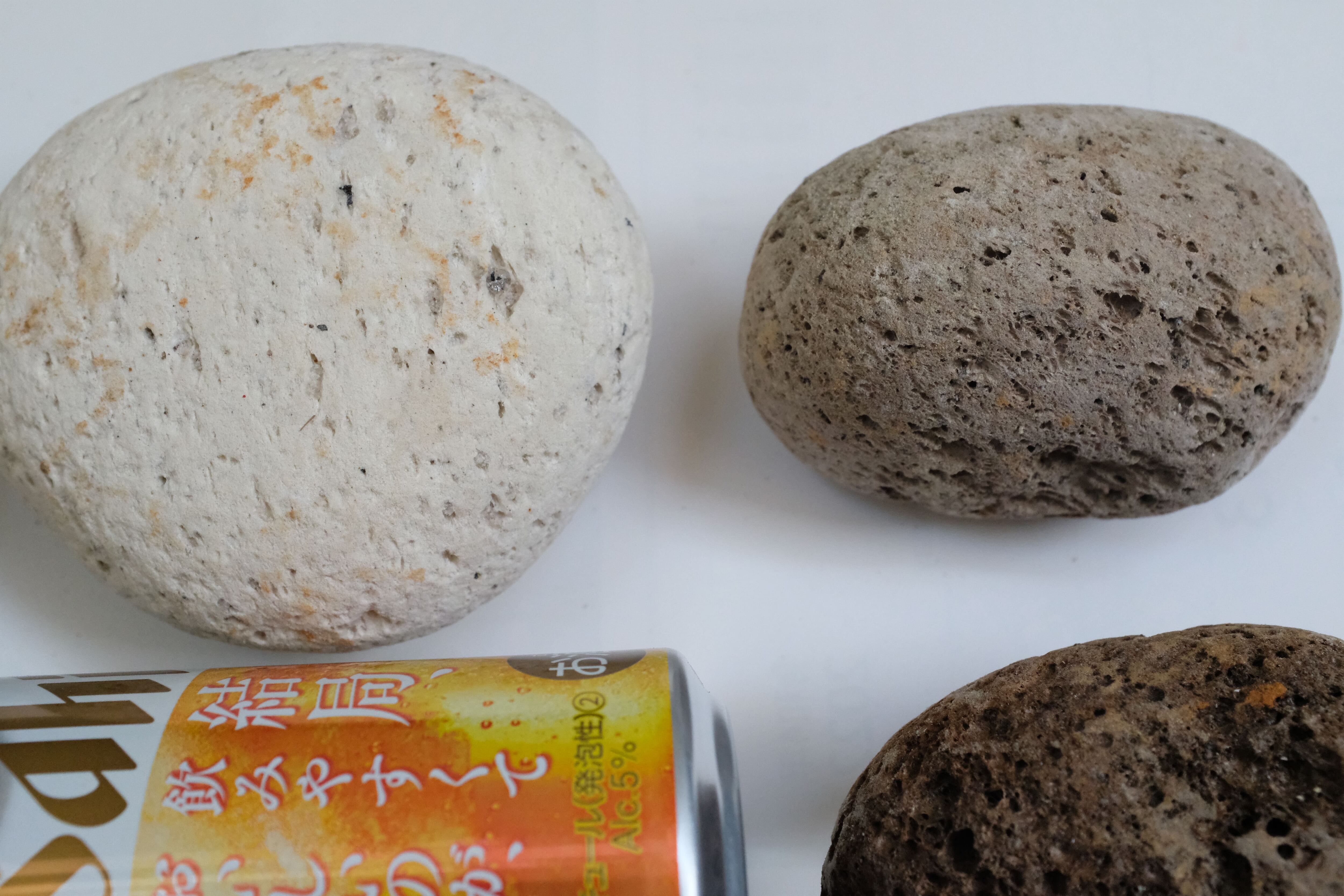 それぞれの軽石が自分を主張しています。(写真をごらんください)