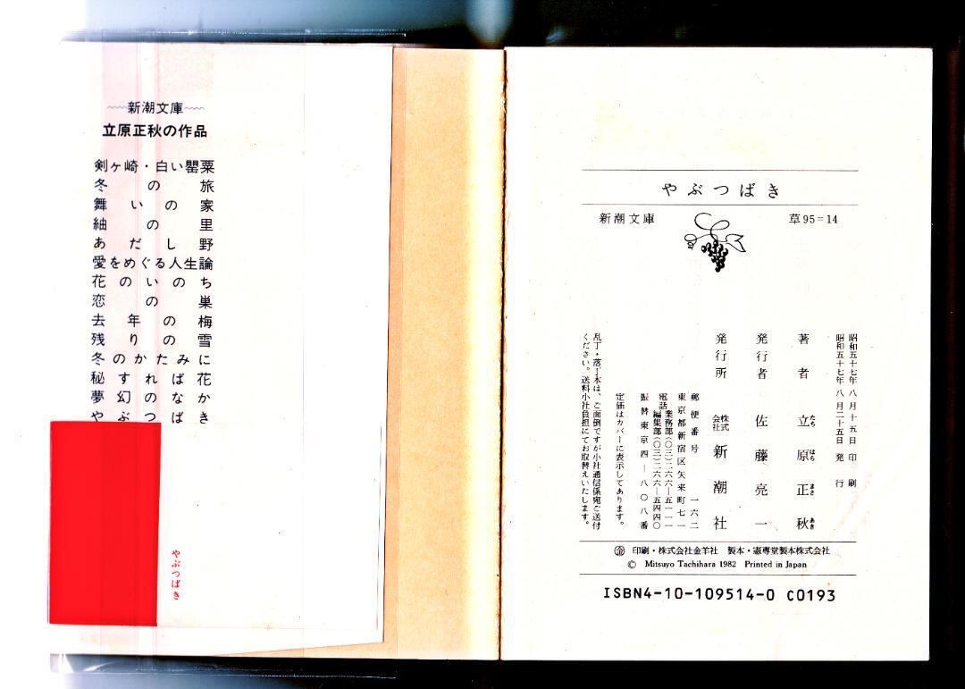 小説 文庫本 やぶつばき 立原 正秋 著