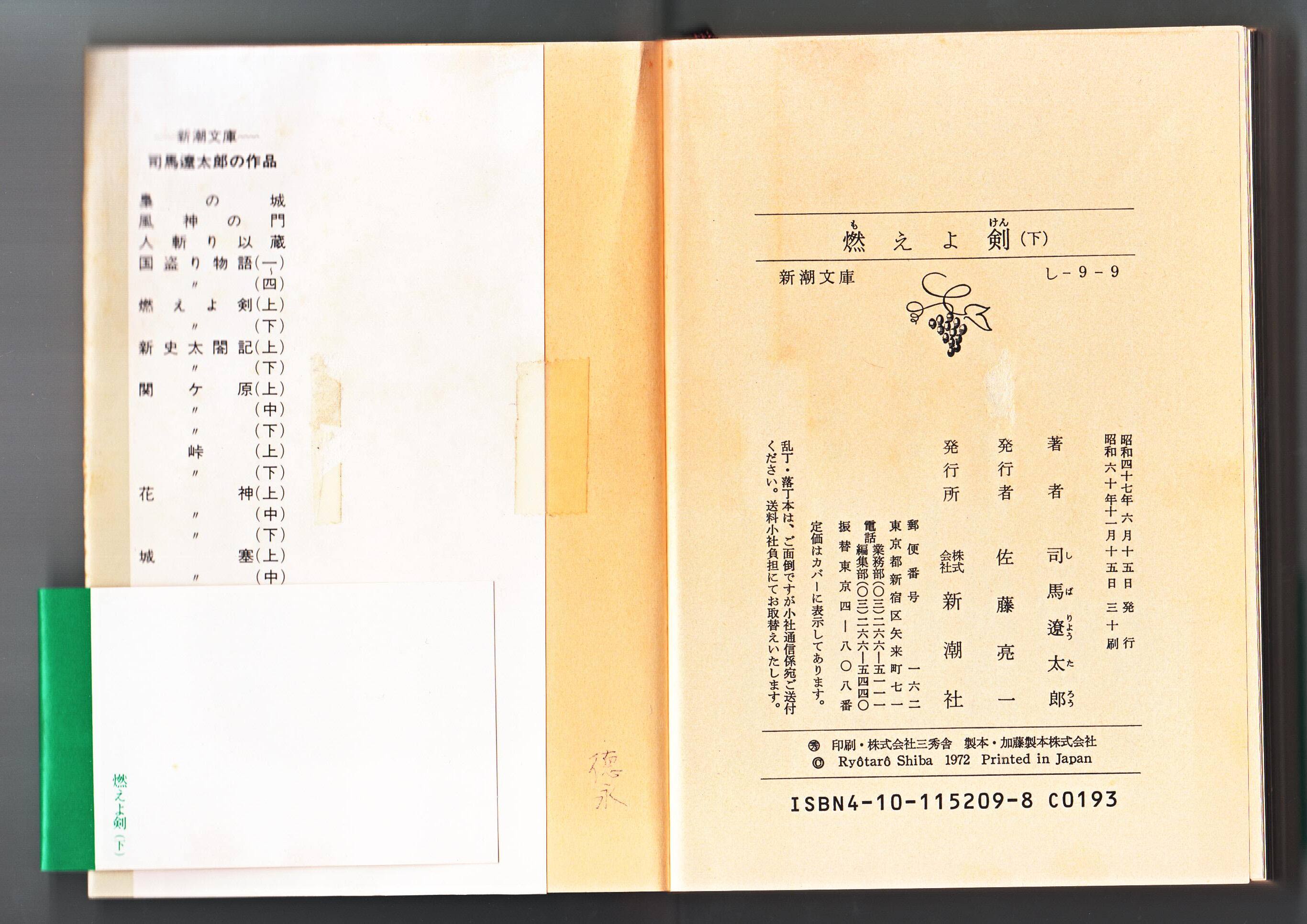 ・小説 文庫本 燃えよ剣(下) 司馬 遼太郎 著
