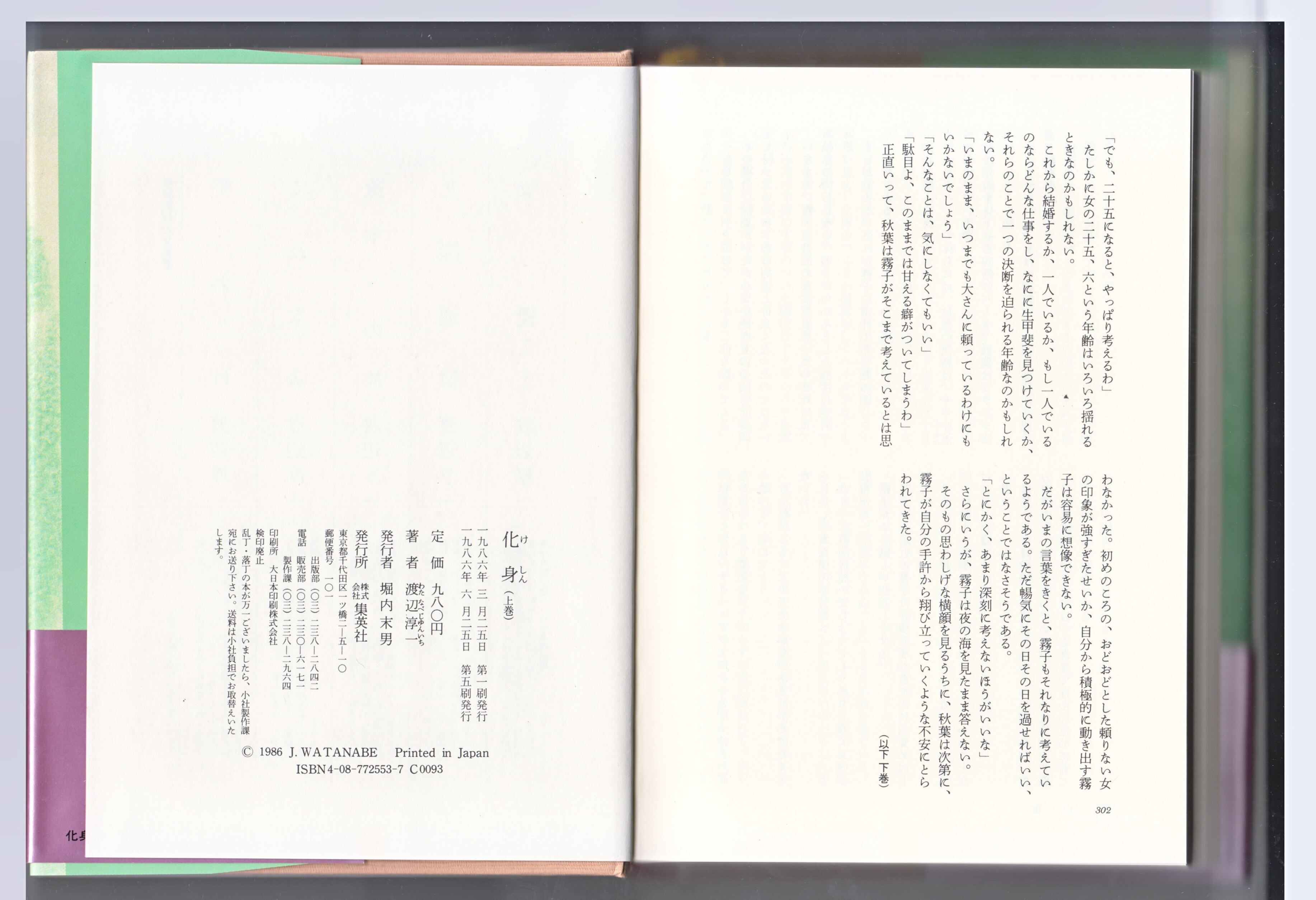 ・小説 単行本 化身(上)(下) 渡辺 淳一 著