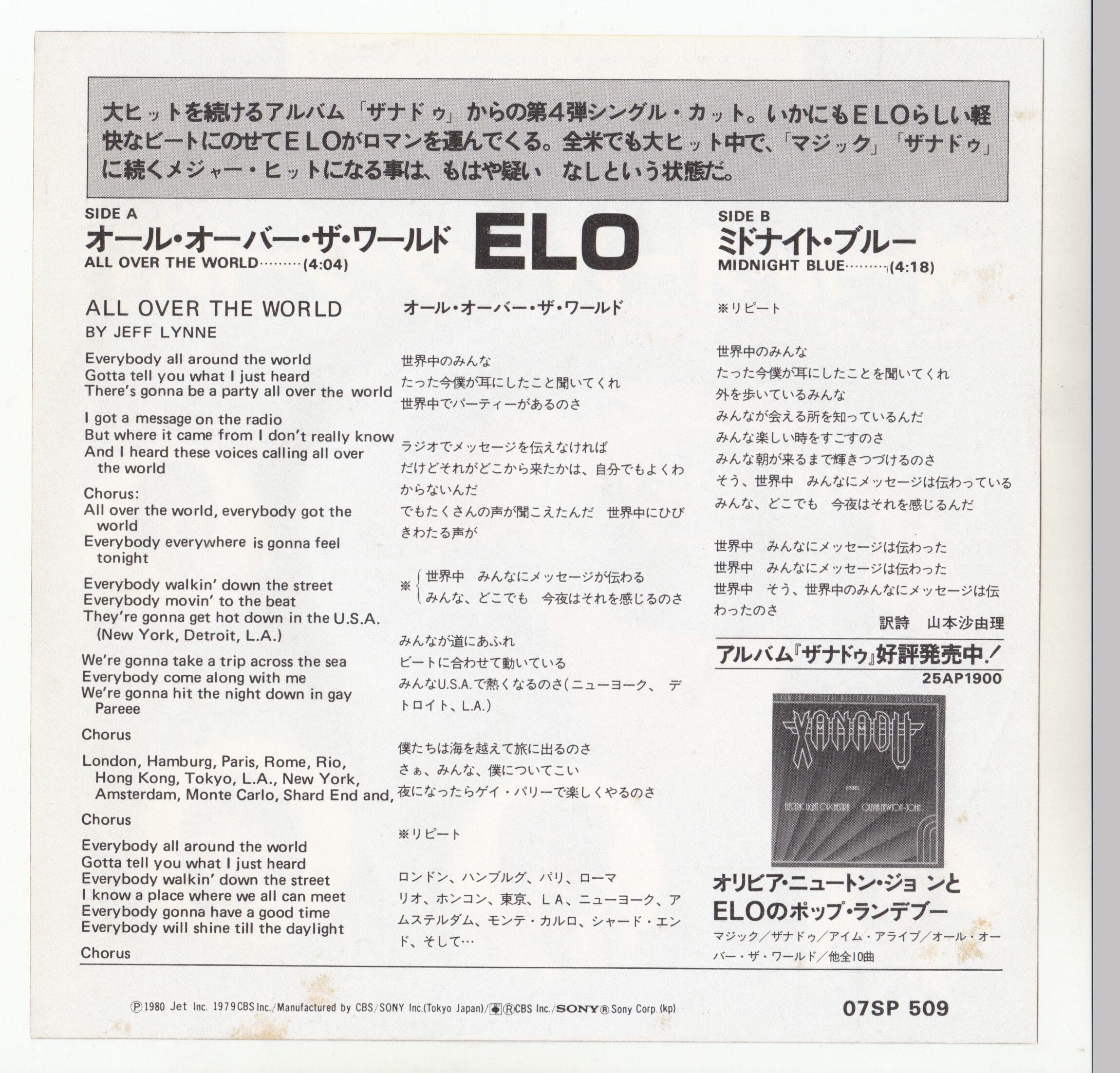 ・アナログ EPレコード ELO オール・オーバー・ザ・ワールド All Over The World