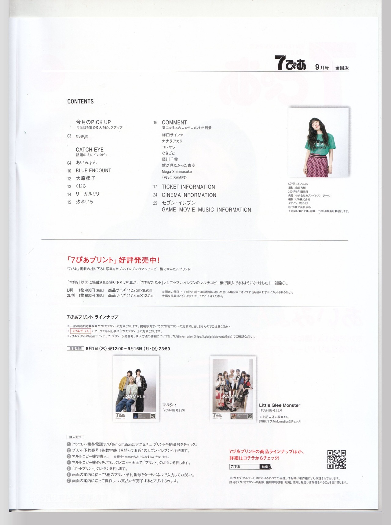 ・7ぴあ 2024年9月号 表紙 あいみょん